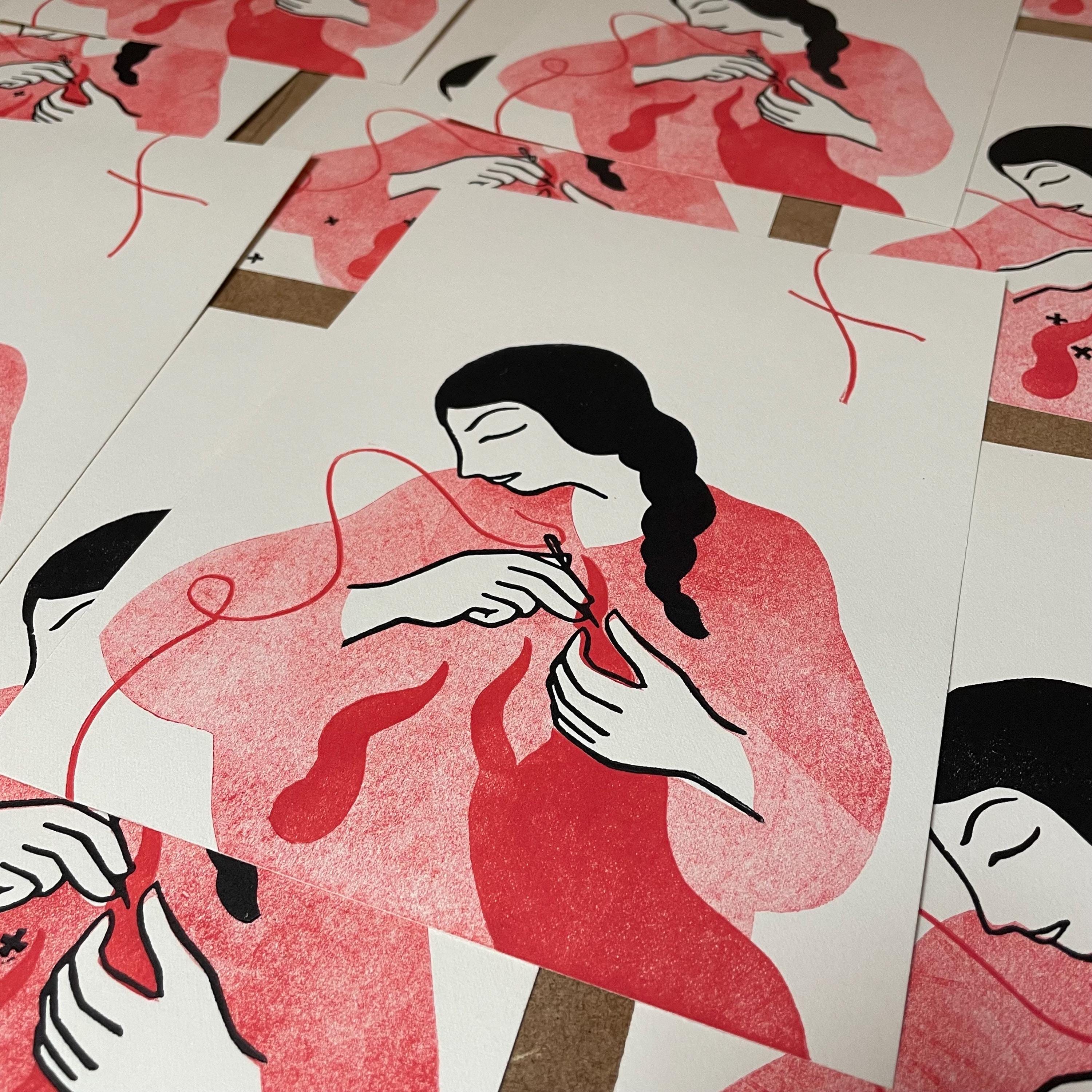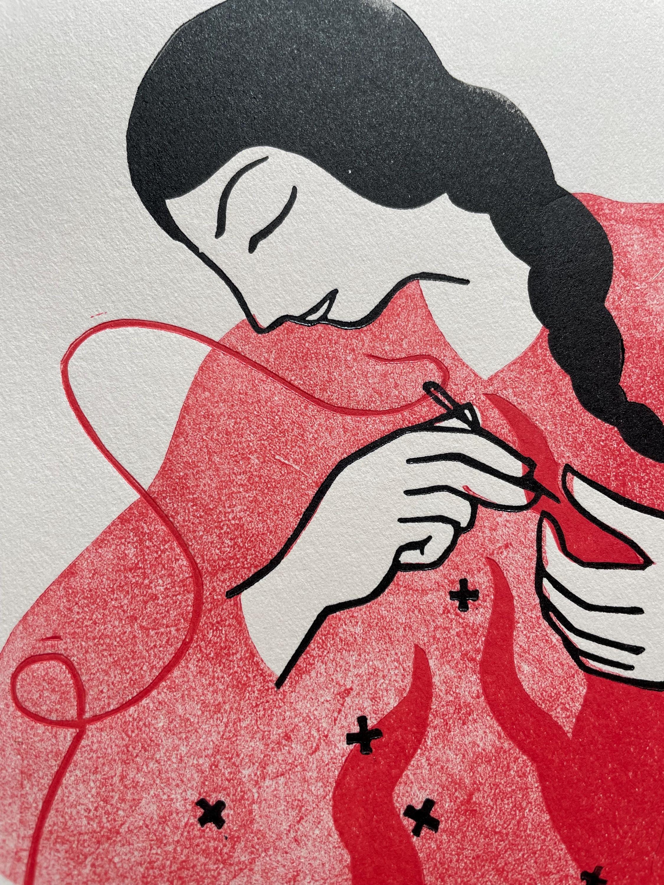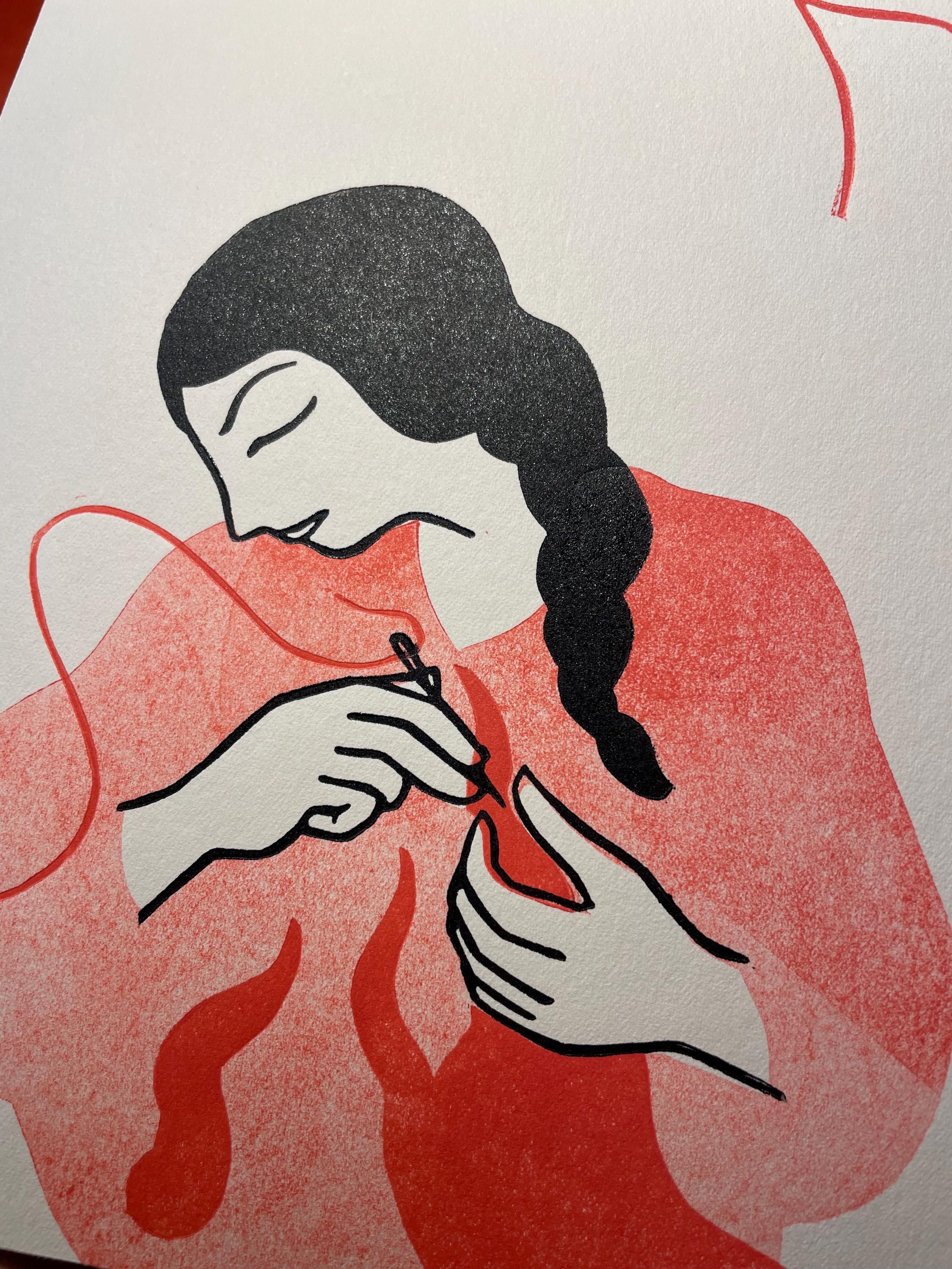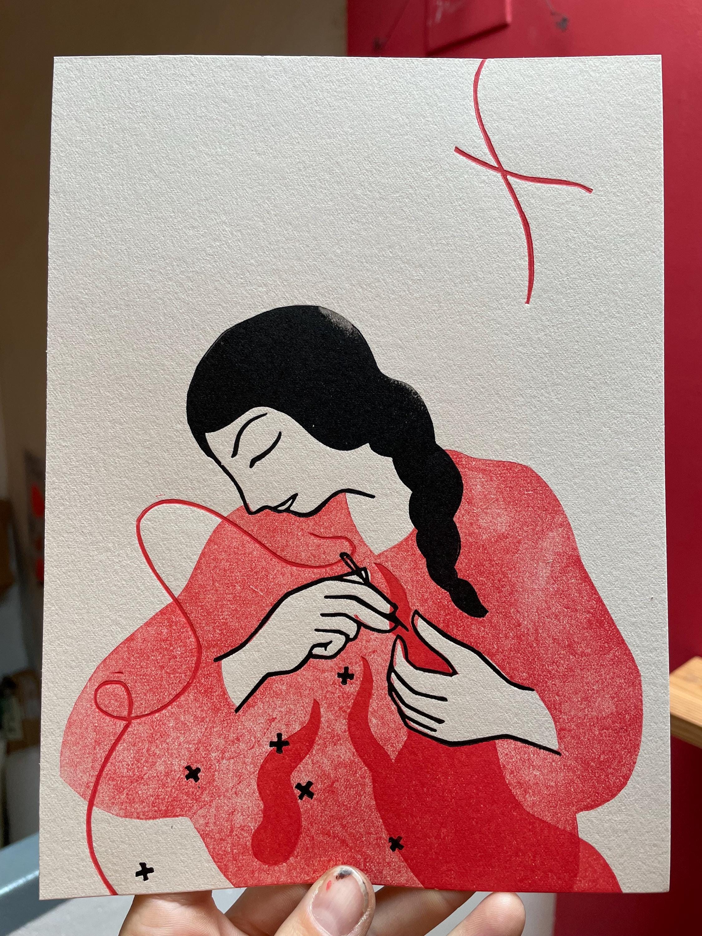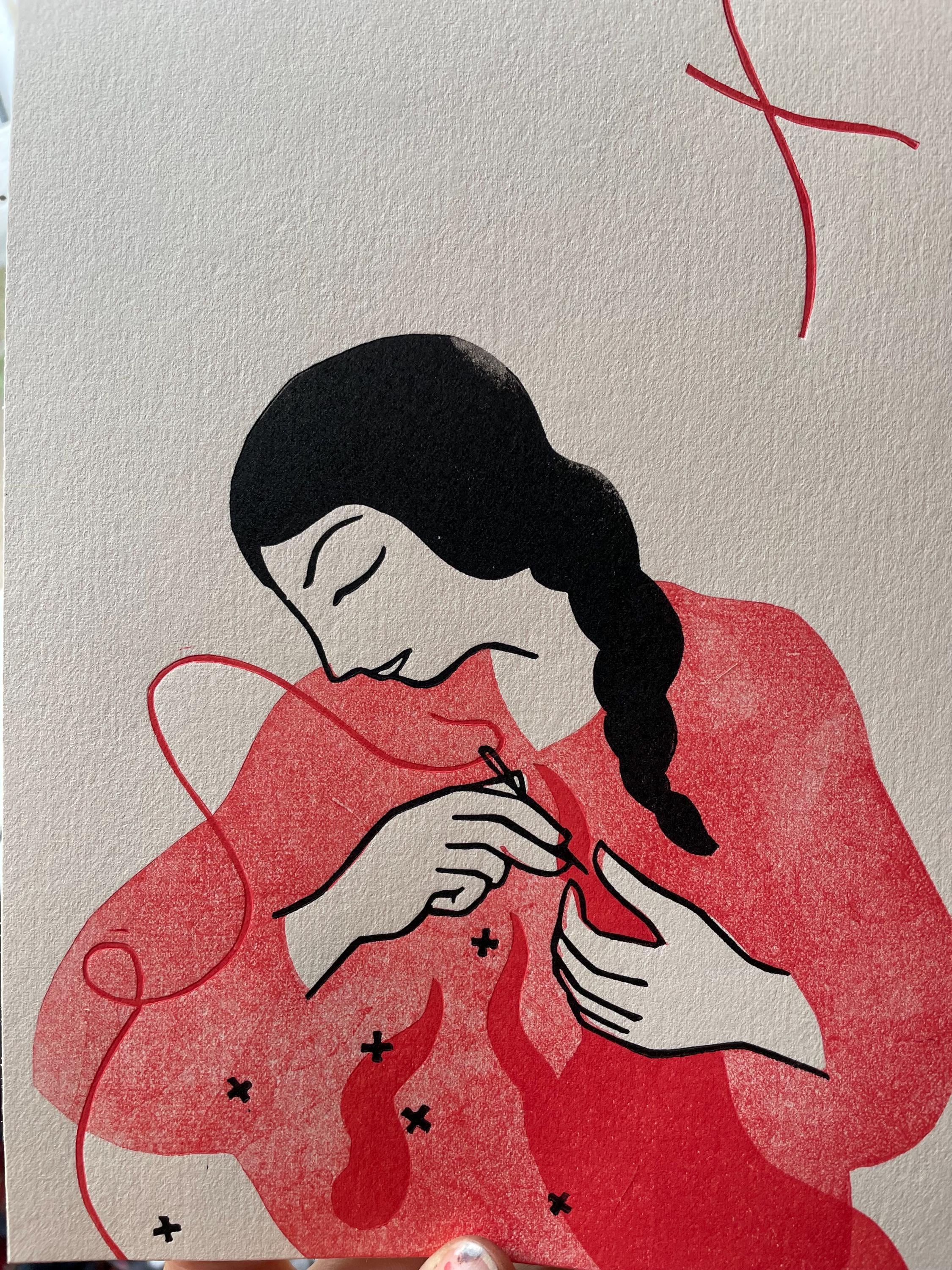 Linocut, multiple passes, 18x24 cm format.