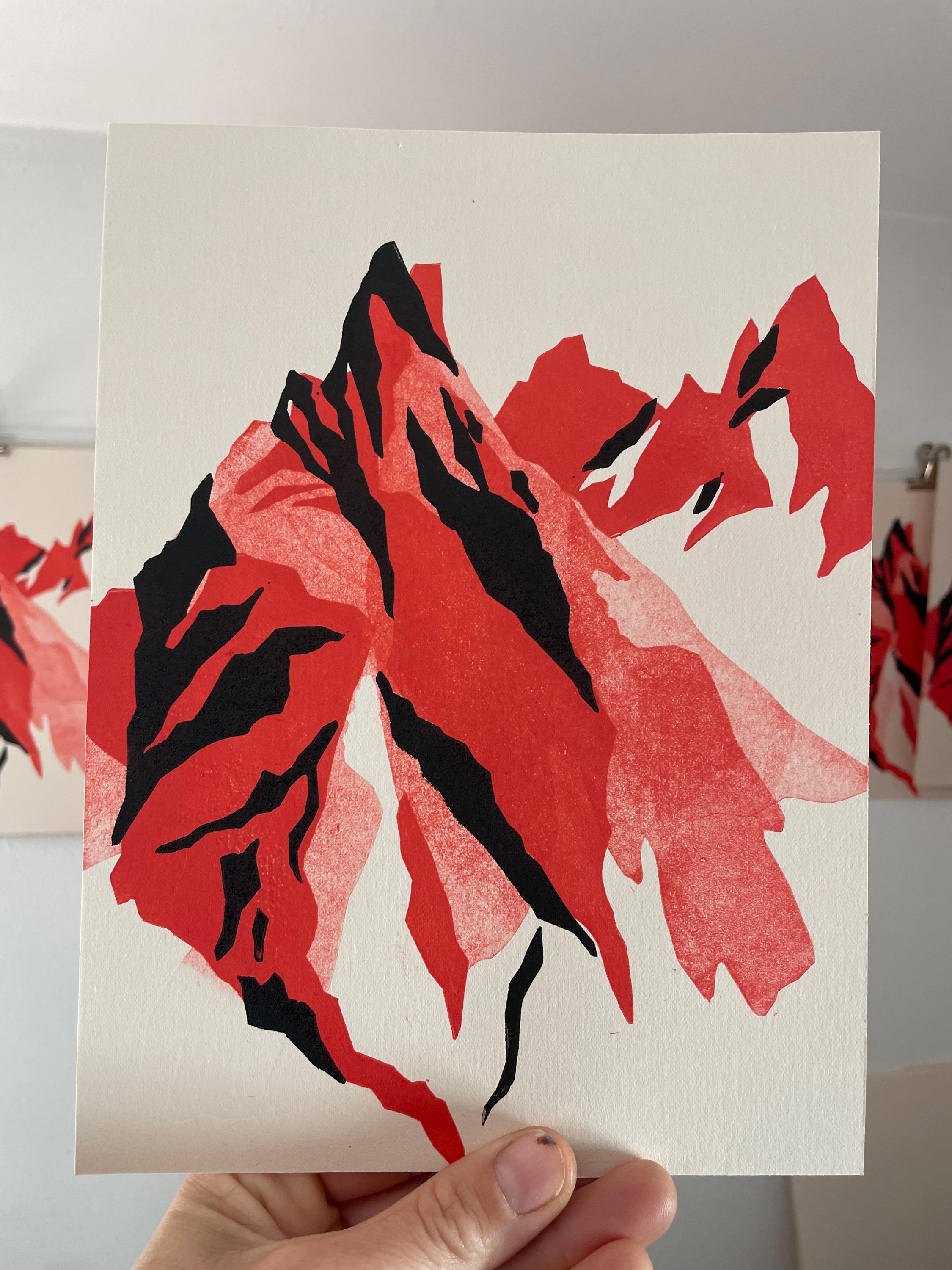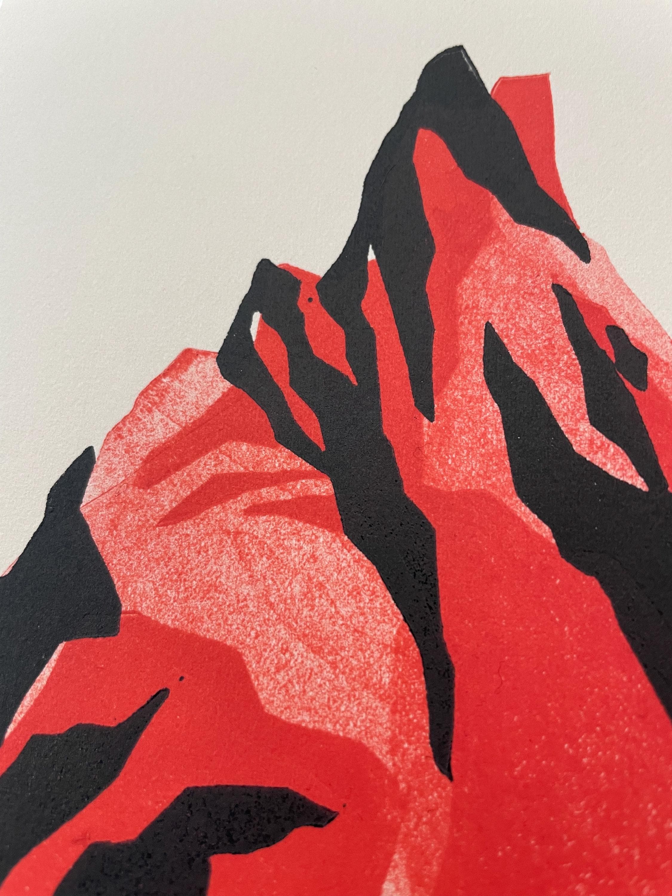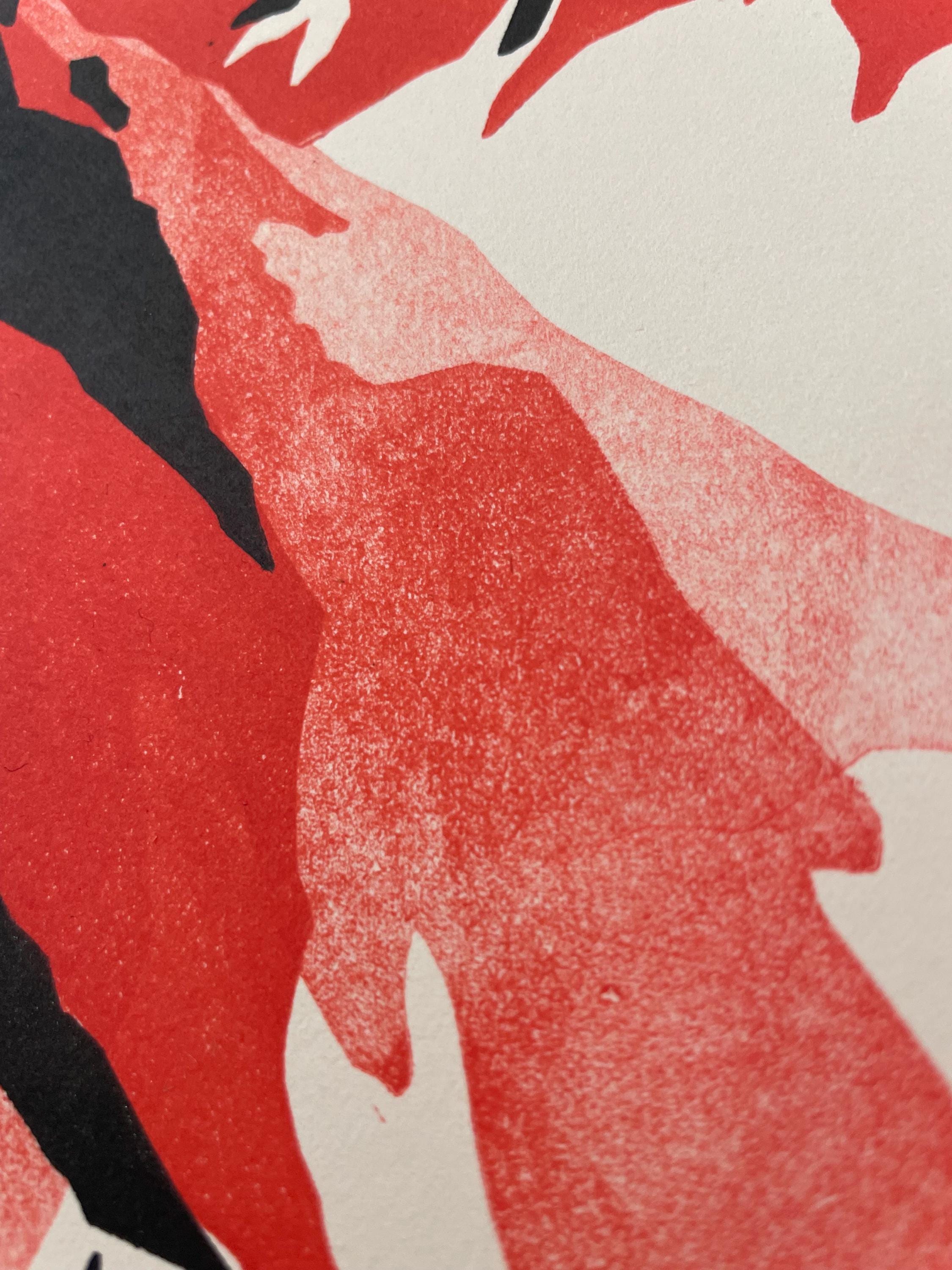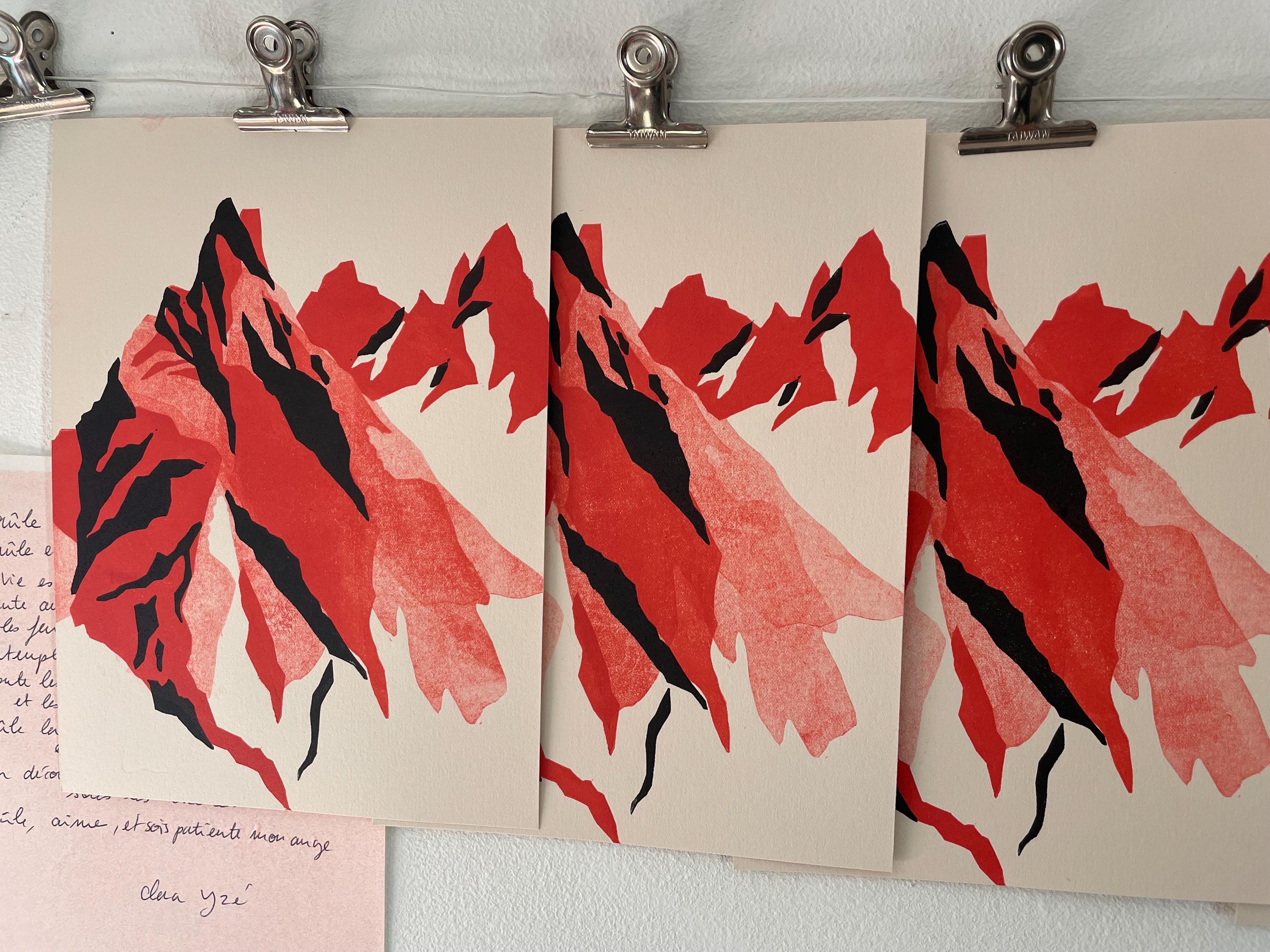 Multicolour linocut, 18x24 cm format, printed on 225g ivory Fabriano Rosaspina paper.
